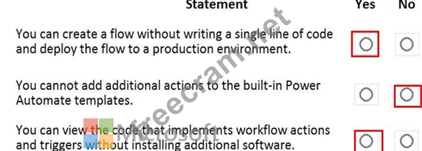 Question 50: For which scenarios can you use Power Automate? For each of ...