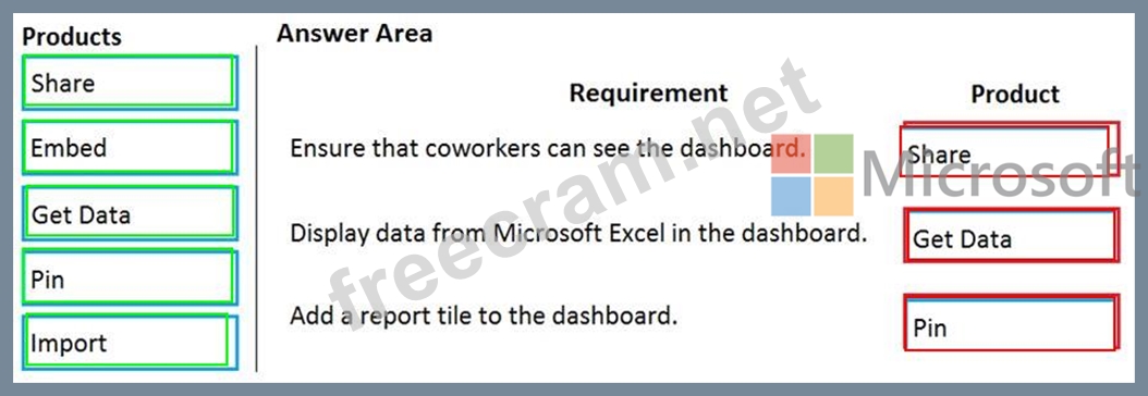 Question 41: You create a Power Bl dashboard. Match each option to its re...