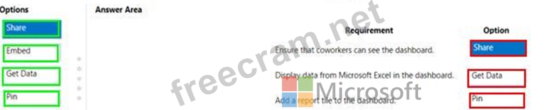 Question 41: You create a Power Bl dashboard. Match each option to its re...