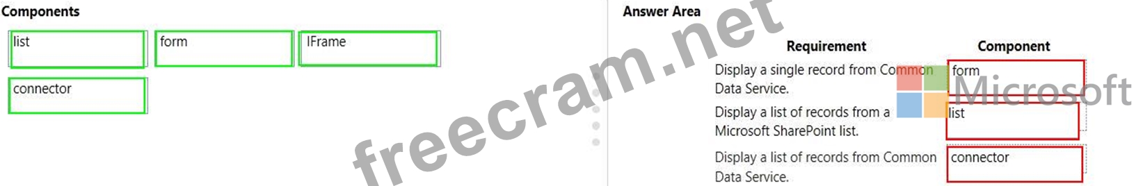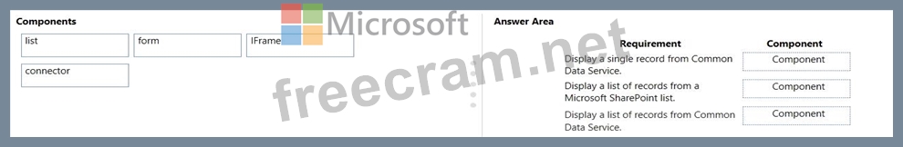 Which components should you use? To answer, drag the appropriate components to the correct requirements. Each component may be used once, more than once, or not at all. You may need to drag the split bar between panes or scroll to view content.