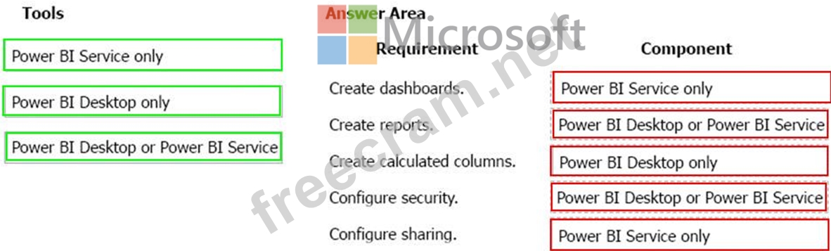 Question 59: You create a Power Bl dashboard. Match each option to its re...
