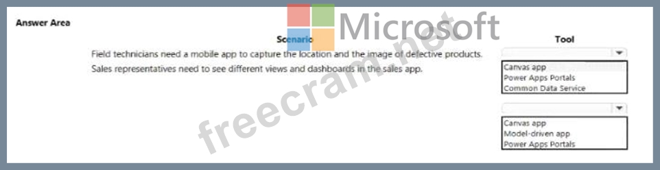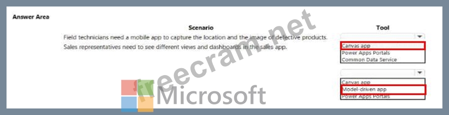 A company plans to use Power Platform to build apps that address specific business challenges. You need to recommend the appropriate types of Power Apps to use. What should you recommend? To answer, select the appropriate options in the answer area.