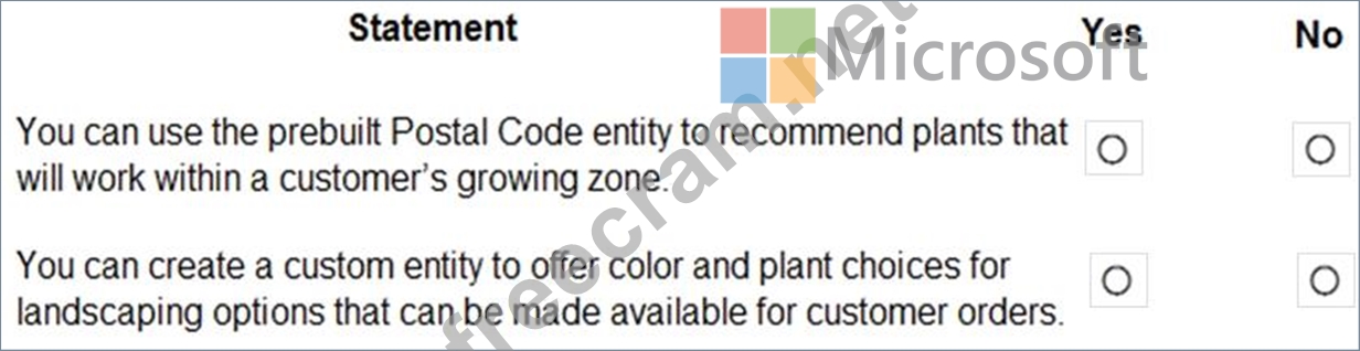For each of the following statements, select Yes if the statement is true. Otherwise, select No.