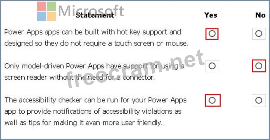 For each of the following statements, select Yes if the statement is true. Otherwise, select No.