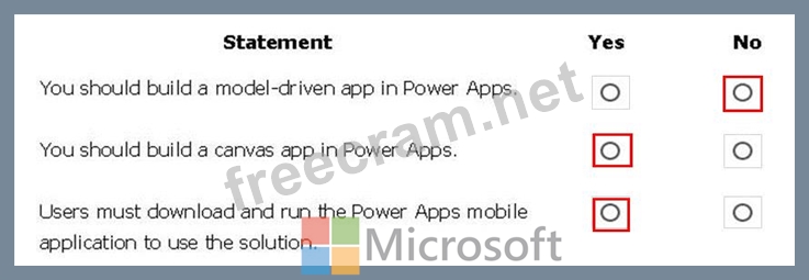 Question 1: A company plans to build Power Apps portals. For each of the...