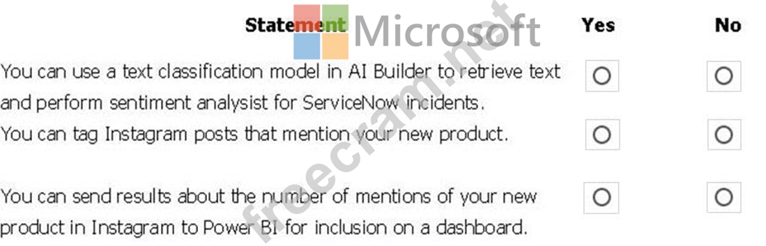 For each of the following statements, select Yes if the statement is true. Otherwise, select No.