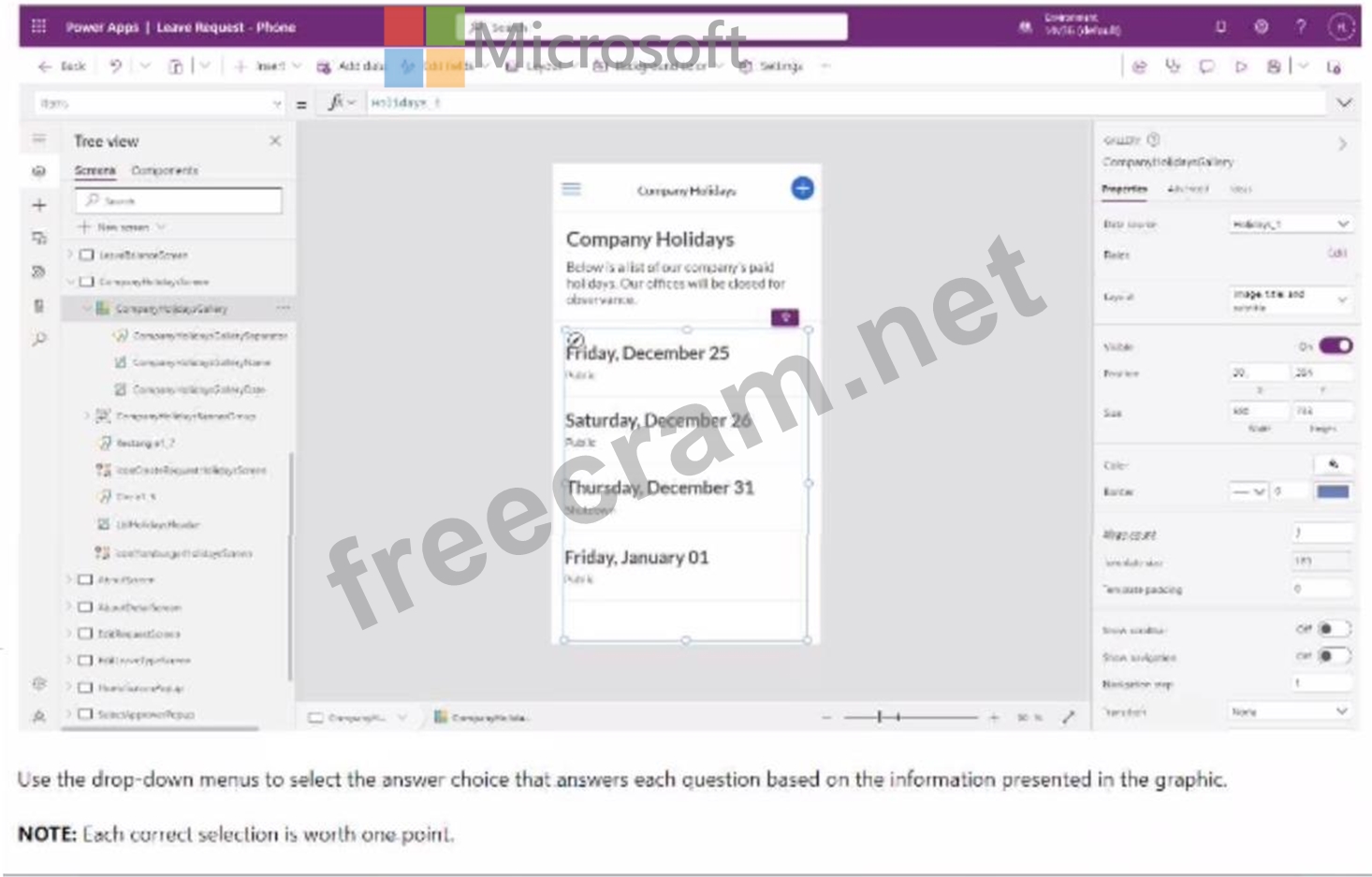 Question 82: You create a Power Apps canvas app. You need to ensure that ...