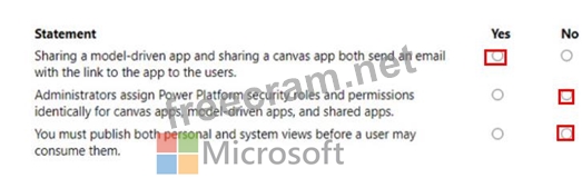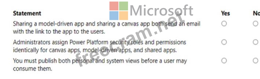 For each of the following statements, select Yes if the statement is true. Otherwise, select No.