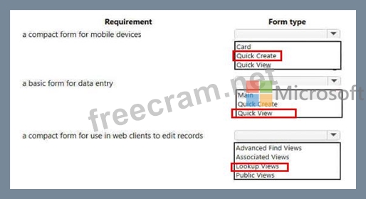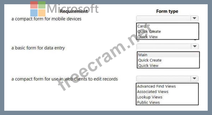Which form types should you use> To answer, select the appropriate options in the answer area.