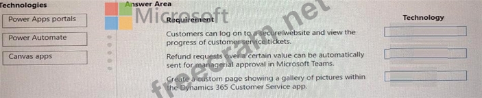 Which technology should you use? To answer, drag the appropriate technologies to the correct requirements.