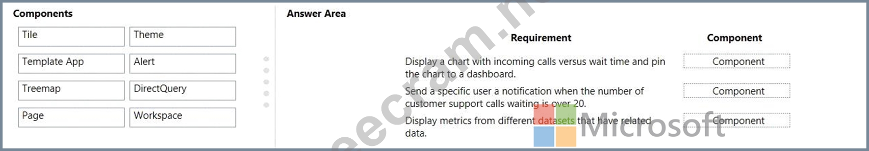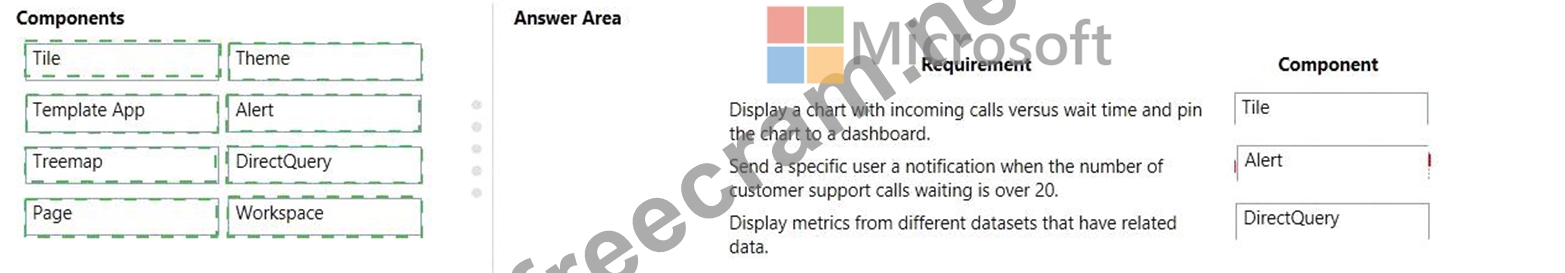 Question 105: You create a Power BI dashboard that displays data from Dyna...
