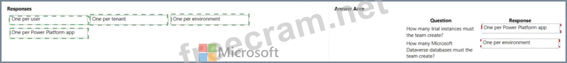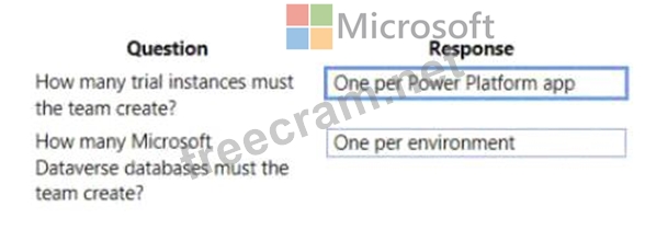 Team members have questions about how many Power Platform instances and Common Data Service databases they need. You need to respond to the team.