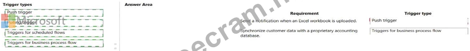 Which trigger types should you use? To answer, drag the appropriate trigger types to the correct requirements.