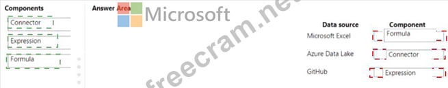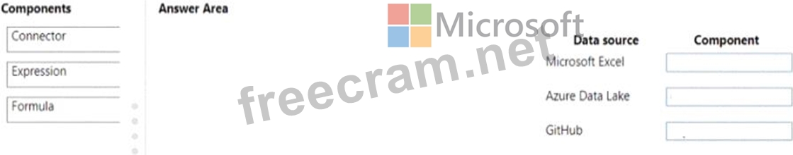 What should you use? To answer, drag the appropriate components to the correct data sources. Each component may be used once, more than once, or not at all. You may need to drag the split bar between panes or scroll to view content.