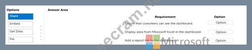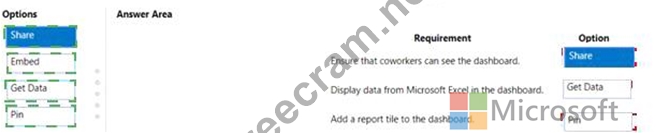 Question 34: You create a Power Bl dashboard. Match each option to its re...