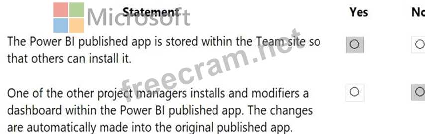 For each of the following statements, select Yes if the statement is true. Otherwise, select No.