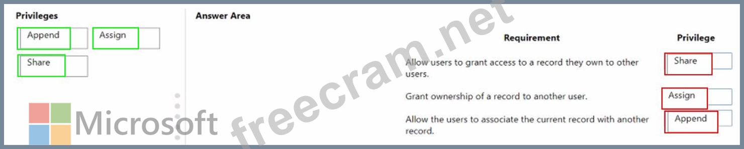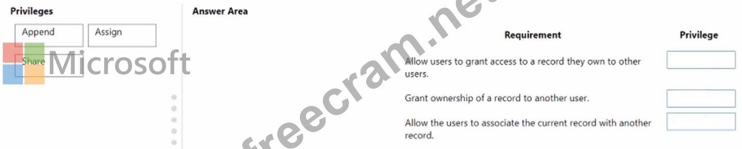 Which privilege should you use to ensure access for each scenario? To answer, drag the appropriate privileges to the correct requirements. Each privilege may be used once, more than once, or not at all. You may need to drag the split bar between panes or scroll to view content.