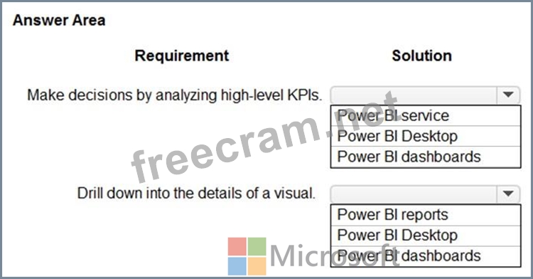 Question 26: You create a Power Bl dashboard. Match each option to its re...
