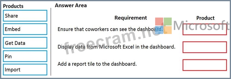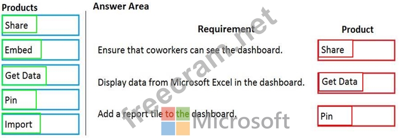 Question 26: You create a Power Bl dashboard. Match each option to its re...