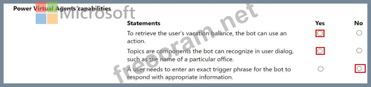 Question 5: You are authoring a Power Virtual Agents chatbot for a compa...