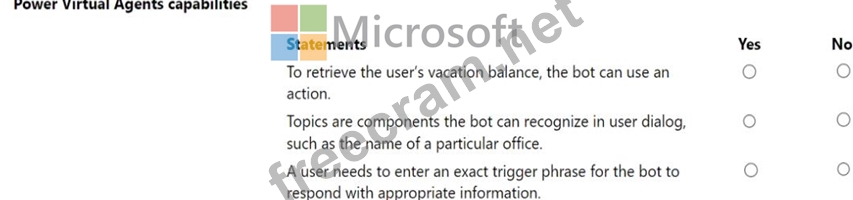 For each of the following statements, select Yes if the statement is true. Otherwise, select No.
