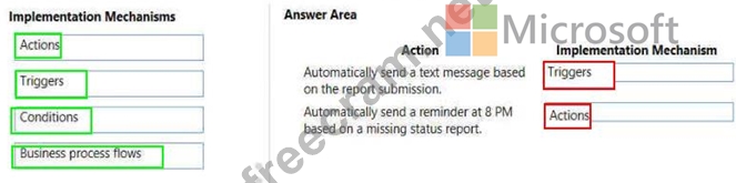 What should you use? To answer, drag the appropriate implementation mechanisms to the correct requirements. Each implementation mechanism may be used once, more than once, or not at all. You may need to drag the split bar between panes or scroll to view content NOTE: Each correct selection is worth one point