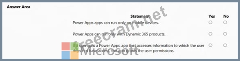 Question 34: A company plans to implement Power Apps. For each of the fol...