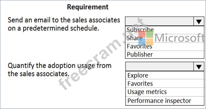 You are a regional sales manager for a large internet retailer. You create a series of Power BI reports and dashboards to help sales associates be more productive and increase sales.