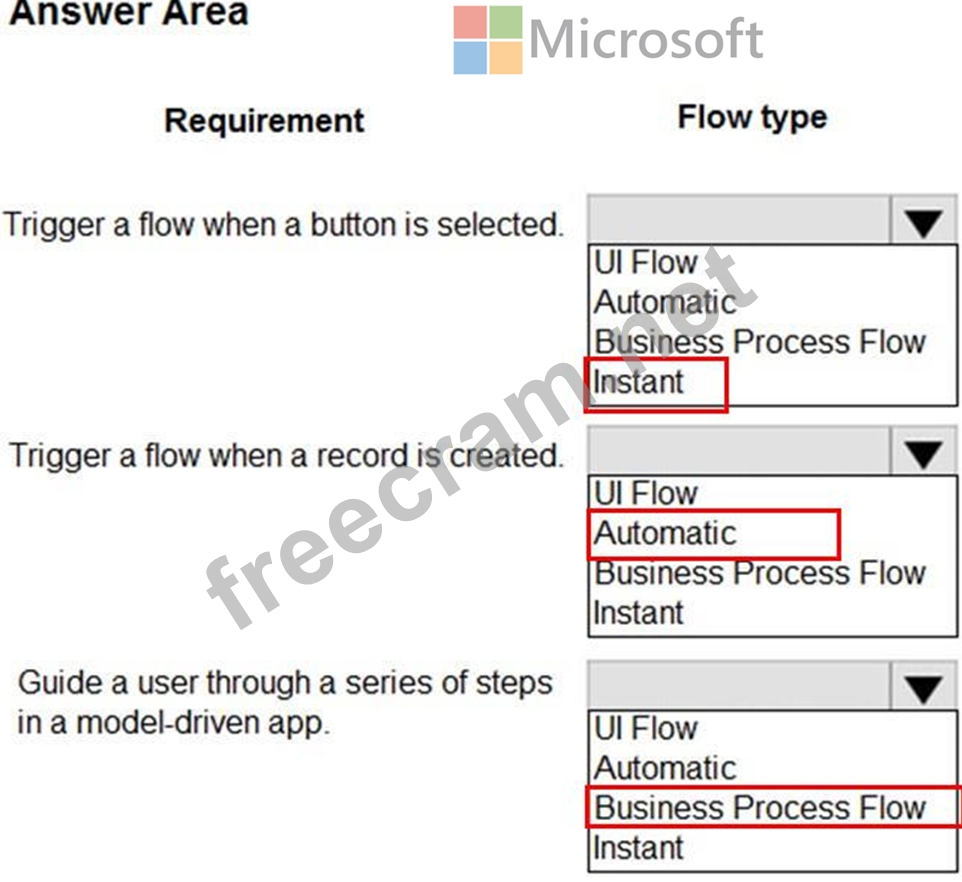 Which flow types should you use? To answer, select the appropriate options in the answer area.