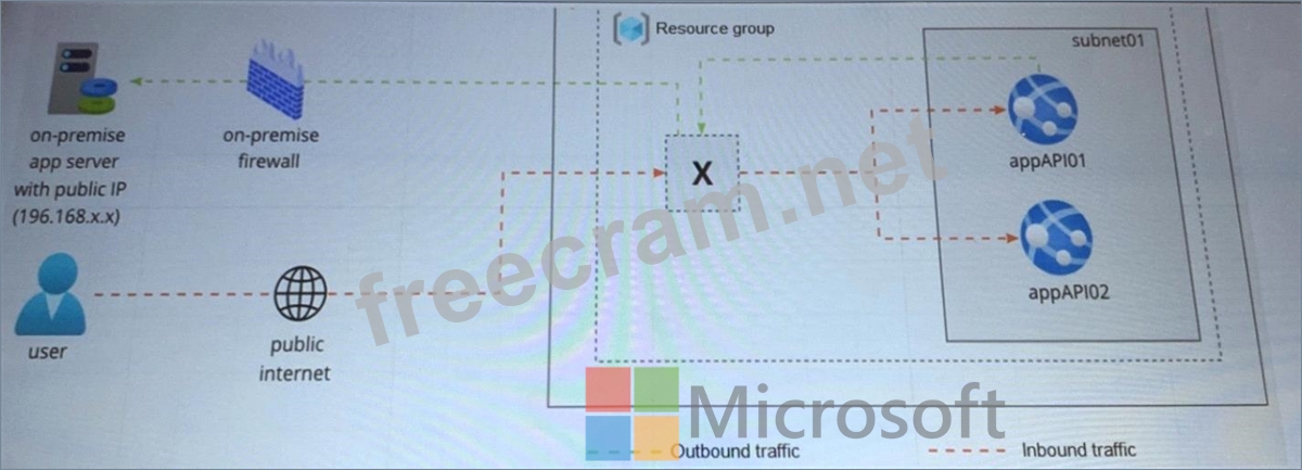 Your company is designing an application architecture for Azure App Service Environment (ASE) web apps as shown in the exhibit. (Click the Exhibit tab.)