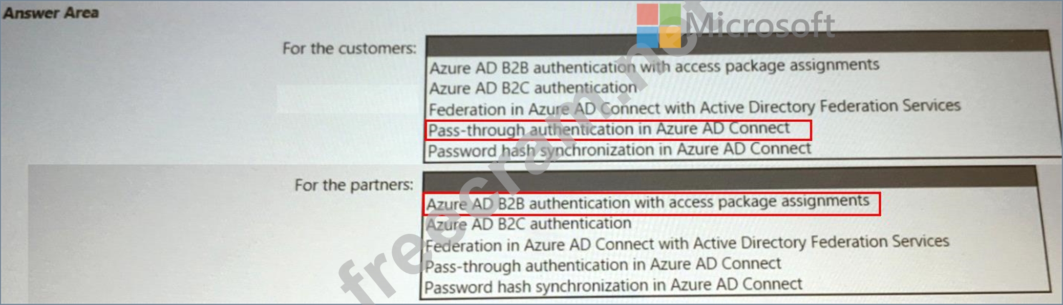* Ensures that partner companies can access Microsoft SharePoint Online sites for the project to which they are assigned The solution must minimize the need to deploy additional infrastructure components. What should you include in the recommendation? To answer, select the appropriate options in the answer area.