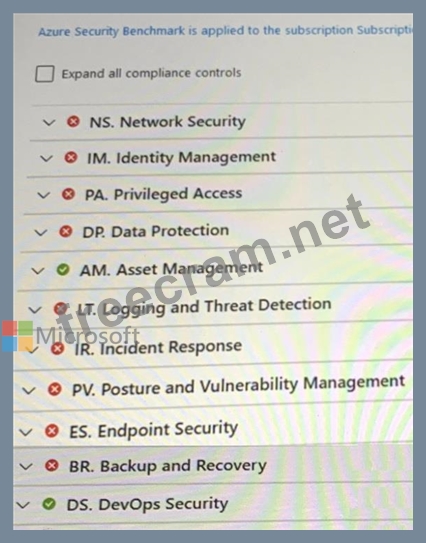 You have an Azure subscription that has Microsoft Defender for Cloud enabled. You are evaluating the Azure Security Benchmark V3 report as shown in the following exhibit. You need to verify whether Microsoft Defender for servers is installed on all the virtual machines that run Windows. Which compliance control should you evaluate?
