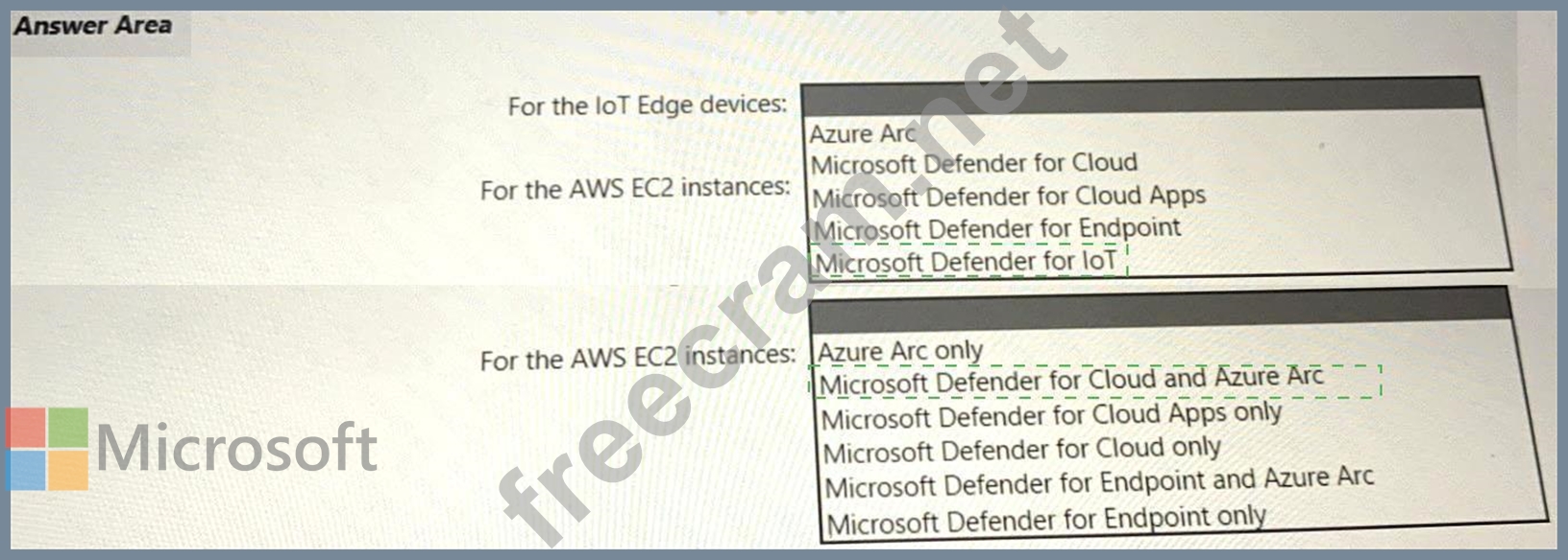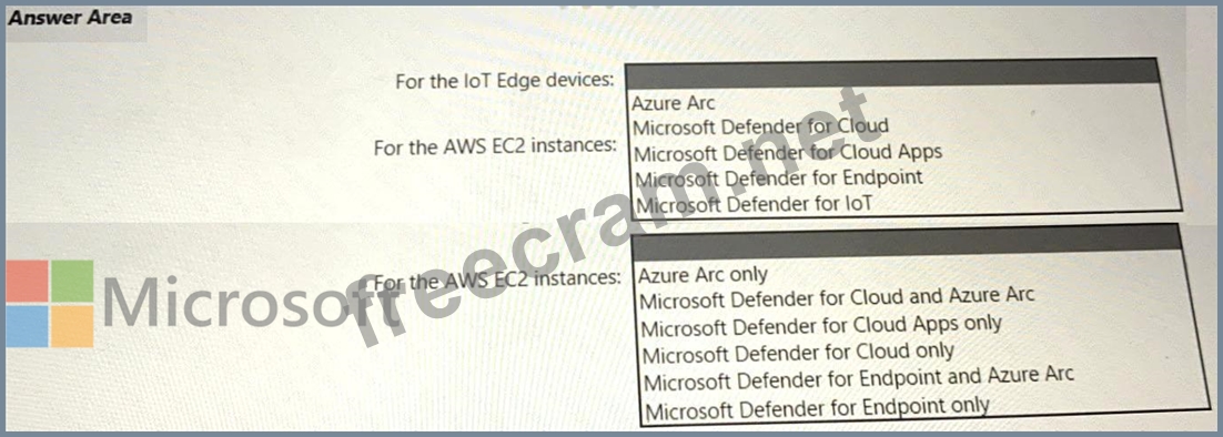 Your company has a multi-cloud environment that contains a Microsoft 365 subscription, an Azure subscription, and Amazon Web Services (AWS) implementation. You need to recommend a security posture management solution for the following components: * Azure loT Edge devices * AWS EC2 instances Which services should you include in the recommendation? To answer, select the appropriate options in the answer area. NOTE: Each correct selection is worth one point.