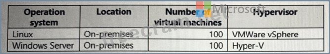 Your company has the virtual machine infrastructure shown in the following table.