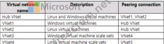Your company plans to move all on-premises virtual machines to Azure. A network engineer proposes the Azure virtual network design shown in the following table.