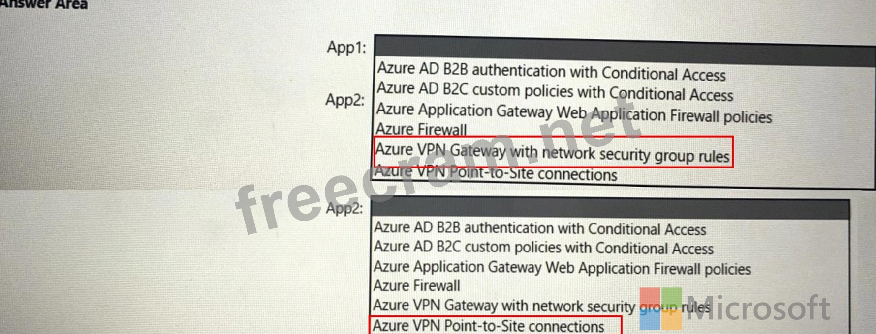 What should you use to meet the requirement of each app? To answer, select the appropriate options in the answer are a. NOTE: Each correct selection is worth one point.