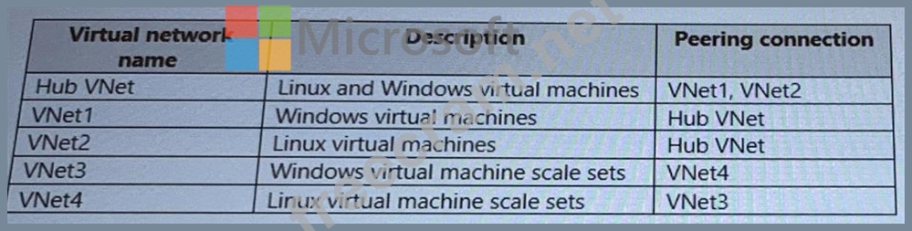 Your company plans to move all on-premises virtual machines to Azure. A network engineer proposes the Azure virtual network design shown in the following table.