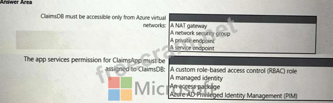 Question 66: You are evaluating the security of ClaimsApp. For each of th...