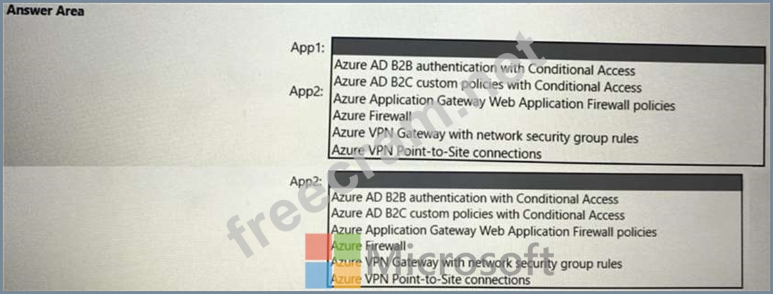 What should you use to meet the requirement of each app? To answer, select the appropriate options in the answer are a. NOTE: Each correct selection is worth one point.