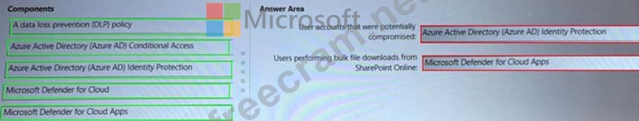 * Users performing bulk file downloads from Microsoft SharePoint Online What should you include in the recommendation for each activity? To answer, drag the appropriate components to the correct activities. Each component may be used once, more than once, or not at all. You may need to drag the split bar between panes or scroll to view content.