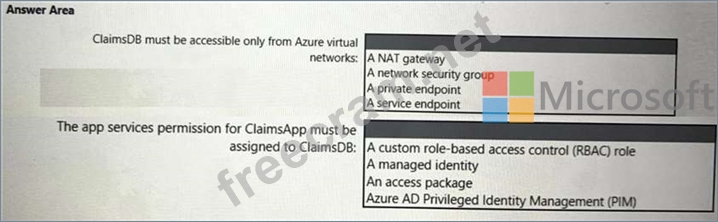 Question 85: You are evaluating the security of ClaimsApp. For each of th...