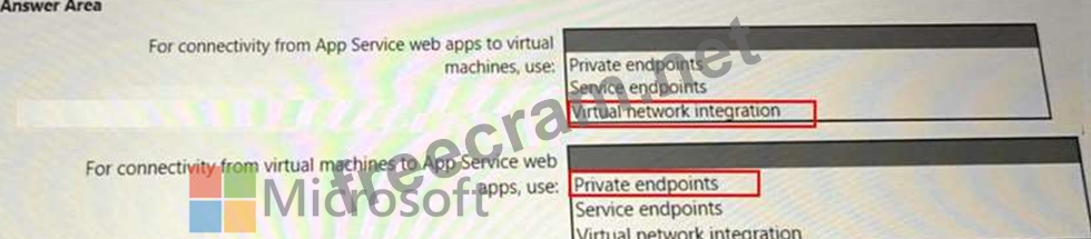 You need to recommend a strategy for App Service web app connectivity. The solution must meet the landing zone requirements. What should you recommend? To answer, select the appropriate options in the answer are a. NOTE Each correct selection is worth one point.