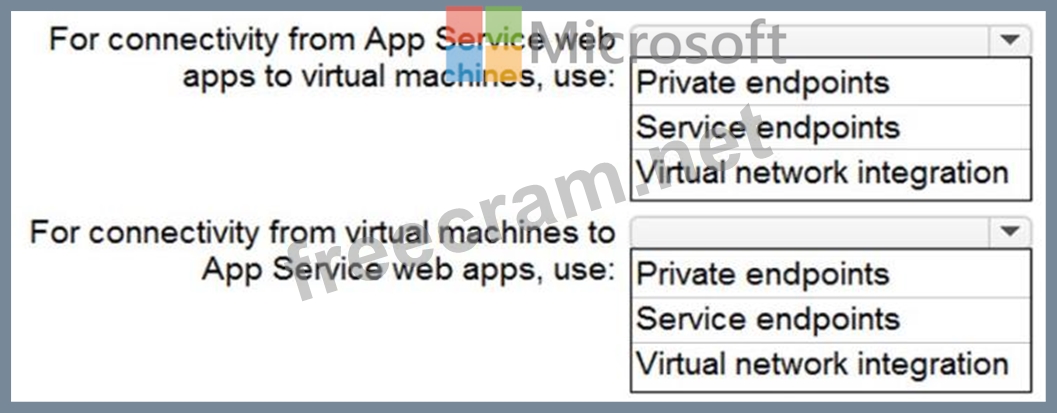 You need to recommend a strategy for App Service web app connectivity. The solution must meet the landing zone requirements. What should you recommend? To answer, select the appropriate options in the answer are a. NOTE Each correct selection is worth one point.