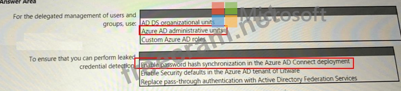 Question 46: You have a Microsoft 365 subscription that syncs with Active...