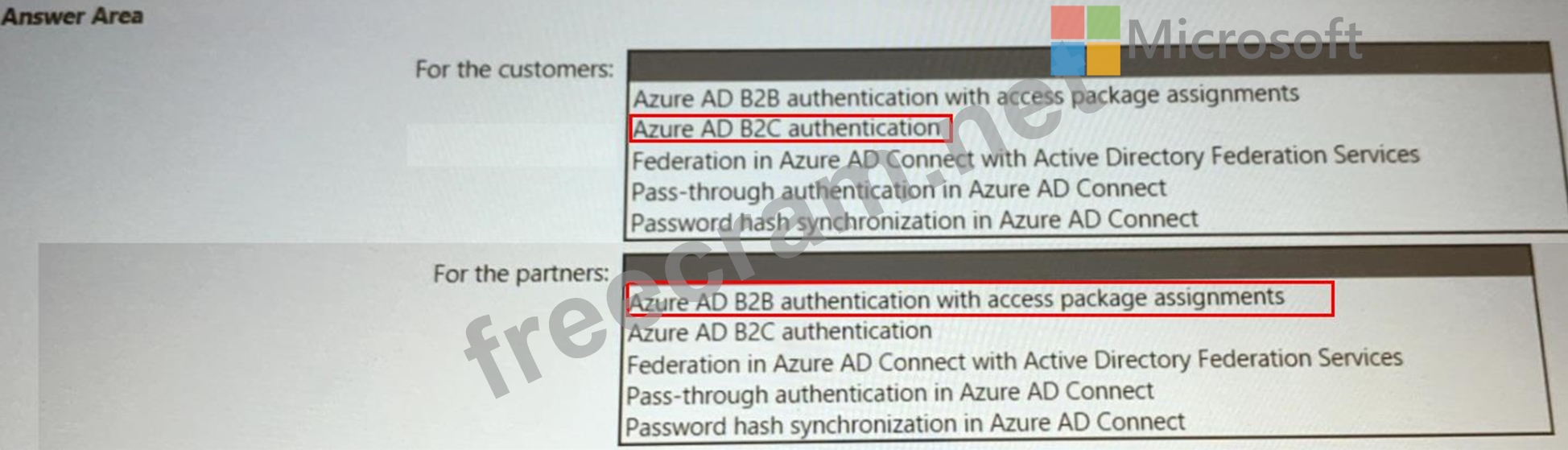* Ensures that partner companies can access Microsoft SharePoint Online sites for the project to which they are assigned The solution must minimize the need to deploy additional infrastructure components. What should you include in the recommendation? To answer, select the appropriate options in the answer area.