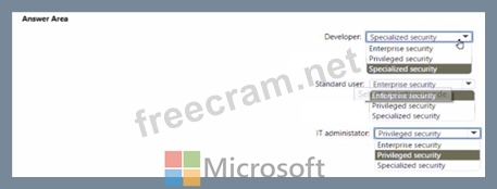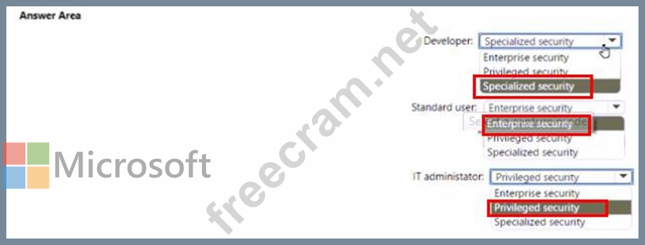 You need to identify which job roles to configure at which security levels. The solution must meet security best practices of the Microsoft Cybersecurity Reference Architectures (MCRA).