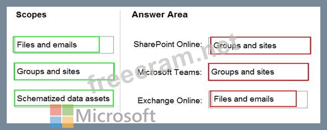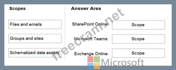 Which scope should you recommend for the sensitivity label policies? To answer, drag the appropriate scopes to the correct locations. Each scope may be used once, more than once, or not at all. You may need to drag the split bar between panes or scroll to view content.
