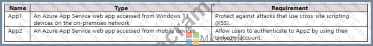 You plan to deploy the Azure applications shown in the following table.
