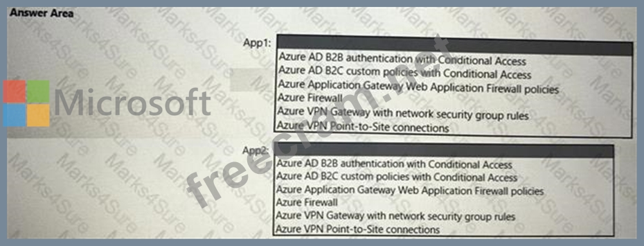 What should you use to meet the requirement of each app? To answer, select the appropriate options in the answer area. NOTE: Each correct selection is worth one point.