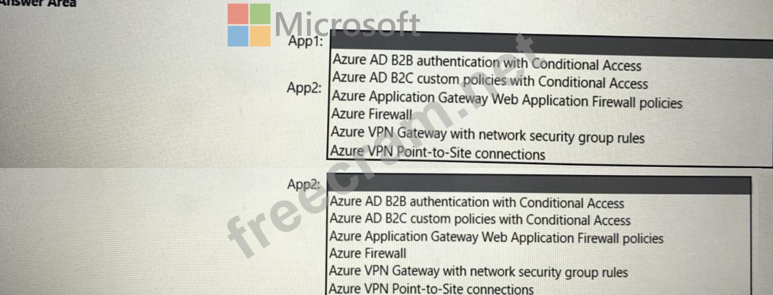 What should you use to meet the requirement of each app? To answer, select the appropriate options in the answer are a. NOTE: Each correct selection is worth one point.